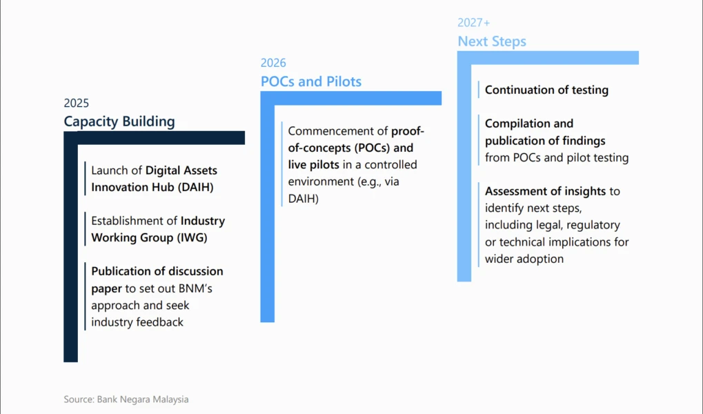 En noviembre de 2025, funcionarios en Kuala Lumpur publicaron una hoja de ruta de tres años para probar la tokenización de activos en varios sectores del mundo real.