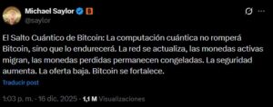 El fundador de Strategy sostuvo que esta tecnología no quebrantará a Bitcoin, sino que lo hará más resistente. Y será mediante un proceso de evolución técnica y migración de activos, en su opinión.