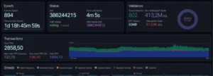 La captura del panel de Firedancer muestra que el validador procesa 2.858 transacciones por segundo (TPS), similar al promedio expuesto por exploradores de Solana.
