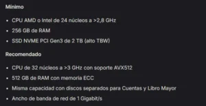 En la siguiente imagen, extraída de los documentos de este nuevo software, se observan los requisitos técnicos para correrlo: