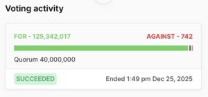 El proceso de votación, que concluyó ayer, 25 de diciembre, tras cinco días de actividad, contó con un respaldo abrumador de 125 millones de poder de voto a favor, lo que representa más del 99% de la participación total.